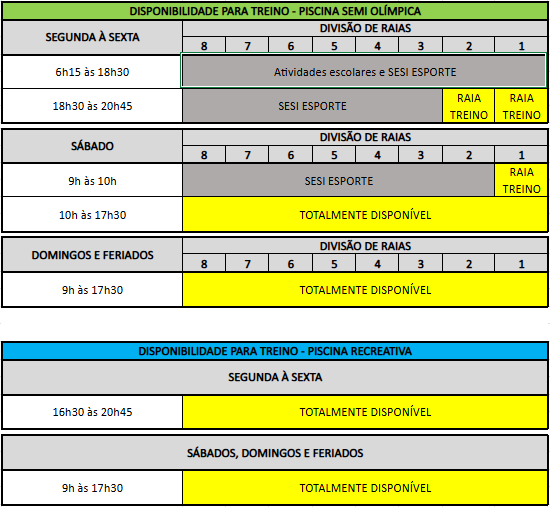 *Nos demais horários, a piscina estará disponível somente para as aulas do SESI Esporte
