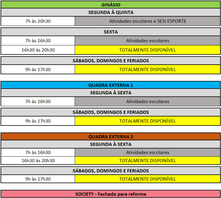 Reservas feitas diretamente na Secretaria do CAT Sesi